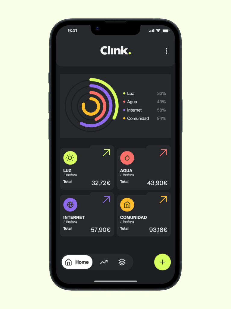Olvídate de los quebraderos de cabeza al tratar de llevar un registro de tus gastos mensuales. Con Clink, tendrás el control total de tus facturas al alcance de tu mano.